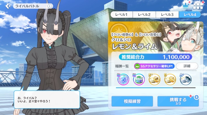![]() | ・未所持キャラと入れ替え ・ファンサービスバフで追撃時の火力UP ・SPスキル発動で回復&魅力アップ |