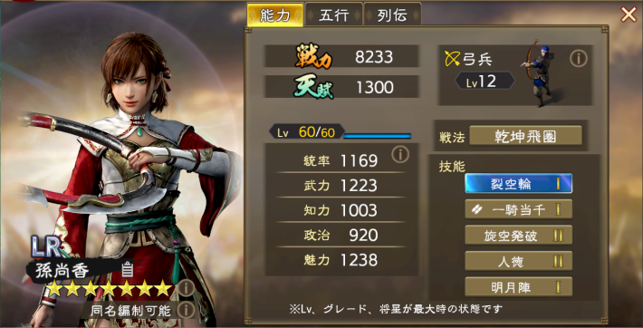 LR孫尚香 | おすすめ度:★★★★・ ・戦法が優秀なので副将で使える └LR孫権やLR孫尚香の副将がおすすめ |