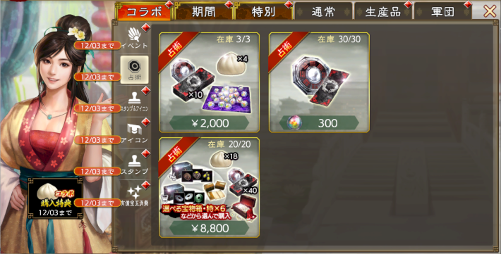 | 占術・武将強化 | 10月25日 〜 11月11日 |