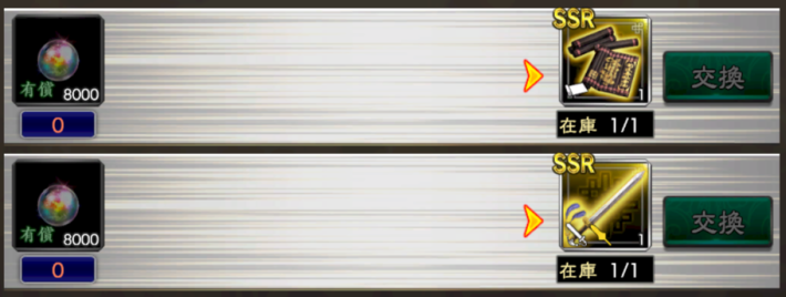 蛇戟素材 × 100【在庫:10】 | SR+武器 × 1 |