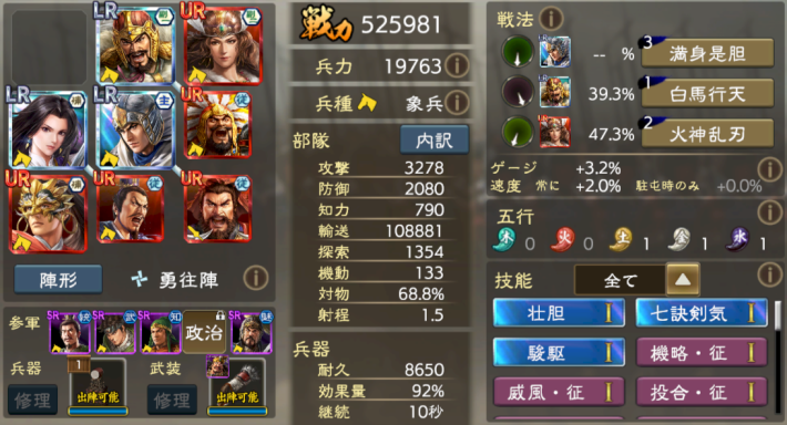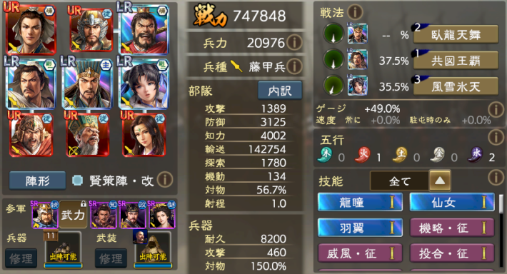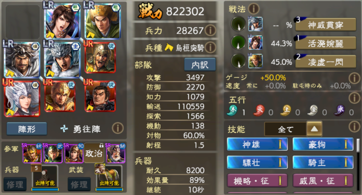 | 機略・征 | 部隊の知力+3% ・与える知力ダメージが増加 ・知力の被ダメージを抑える |