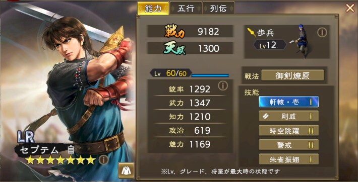 LRセプテムは繁体字版限定の物理歩兵武将。兵力50%以上の際、