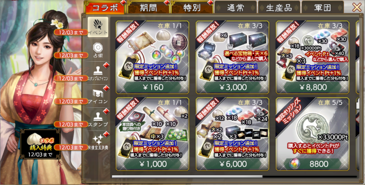 SSR曹操推挙令 × 10 | 150 | 100 | 19 |