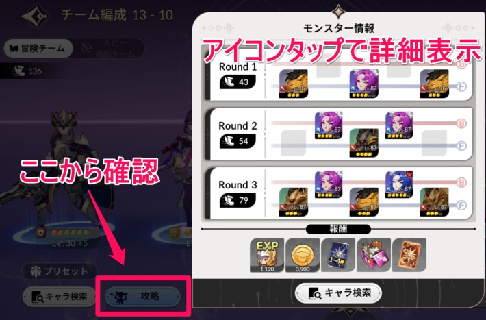 ナイトメアではステージが2つのラウンドに分かれており、1ラウンドずつチームを編成できます。敵の情報を見て、各ラウンドに適したパーティを編成しましょう。