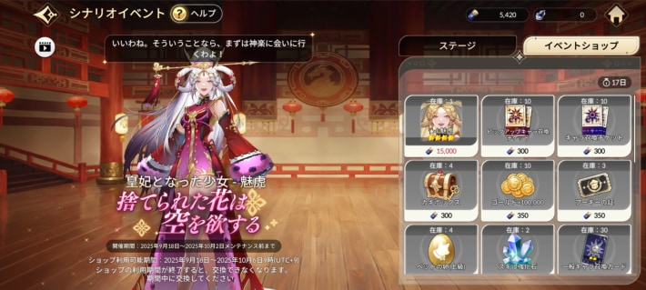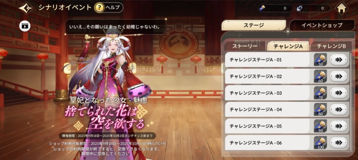 ![]() | 後半ストーリーやチャレンジBはイベント開始の数日後に解放されるので、まずは前半ストーリーやチャレンジAを進めましょう。 |