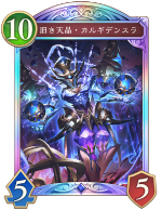 | ・天晶の魔手を展開して盤面形成ができるミッドレンジデッキ ・信仰値を溜めて天晶の深淵で大ダメージを狙える ・カルギデンスラに進化、シイムに超進化が必須なのでEP管理が難しい | |