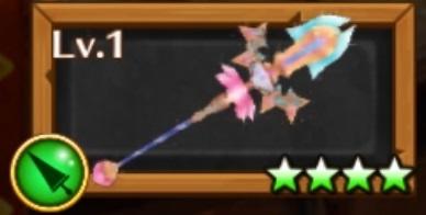 ブルームクリスタル | 『モチーフキャラ:正月エクセリア』 攻撃バフとSPアップを併せ持つ杖。尖った性能ではないが、汎用性が高く優秀な武器だ。中でも、即死回避を持たない魔道士の強い味方になってくれるぞ! |
