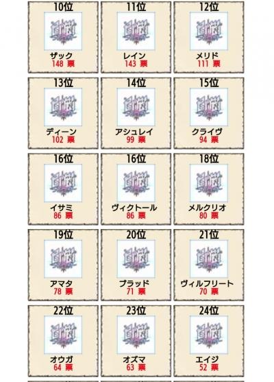 | 順位 | キャラ名 | 票数 |