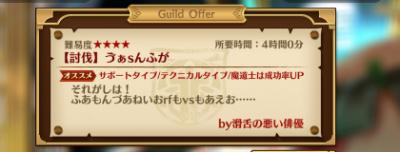 ギルドオファーの文面が、エイプリルフール仕様になっています。多すぎて全部を書き出すことはできませんが、内容や依頼者がちょっと面白い感じに変化!
