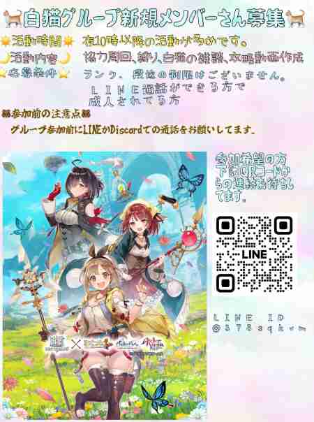 ⭐︎⭐︎白猫LINEグループ新規メンバーさん募集中⭐︎⭐︎