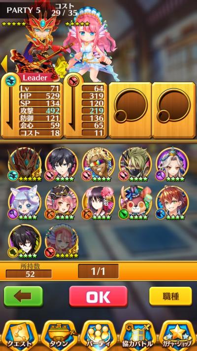 ①4属性ptを目指します。序盤で有用な剣を優先し回復で安定させます。シャナオウで3人ptを組み、コストの高い火力ゲオルグを最後に持っていきます。ゲオルグのデメリットはコストが高いこと、育成が大変なこと、火力を上げるには時間がかかること。このptのデメリットは殆ど無いがptが組める分平均的に育成した場合ルーンソウルが大量に必要。スターが後回しに出来るが周回がより必要。