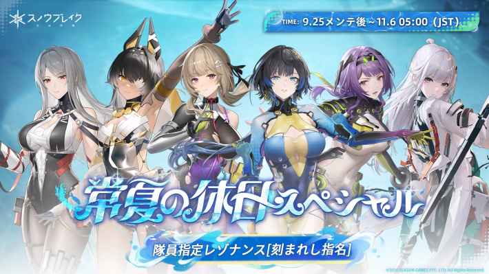 Ver3.2は9/25(木)から開催中。イベント「常夏の休日」の開催や新キャラ「ファニー-澄心」の実装、「シーリス-天遊」の実装が告知されています。