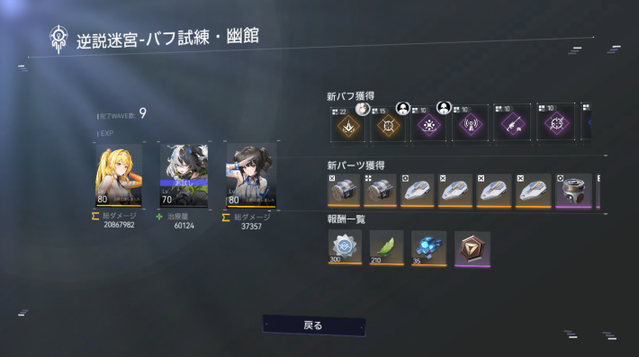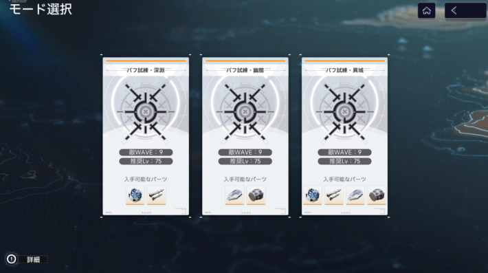 バフ試練は全9Wave登場する敵をすべて殲滅するモードです。報酬では補助ロボットのパーツやバフ、戦場EXPが手に入るので、バフやパーツを集めて強化を進めていきましょう。