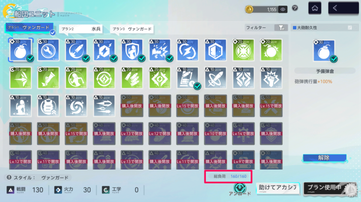 配置するユニットに応じて、戦闘・火力・工学の3つのポイントが増加し、ポイントに合わせたスタイルが発動します。最初は船員スタイルしか発動できませんが、航海レベル7に上げれば配置上限が上がる事で、他のスタイルに必要な配置が可能になります。