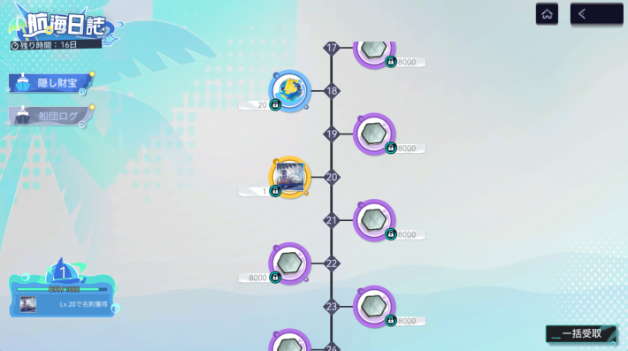 結束大船団の船団レベルを上げる事で、イベント交換素材や限定名刺報酬を獲得できます。レベル上げに必要な船団スコアは、イベントのクリアやミッション達成で獲得する事ができます。