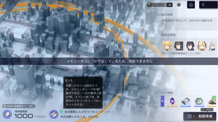 勇者ゲームへの挑戦に必要なメモリーキューブは、センスを200消費する事で1日1個手に入ります。メモリーキューブは期間中であればいつ使っても問題ありませんが、獲得できるのは1日1個なので、毎日忘れずにセンスの消費は行いましょう。