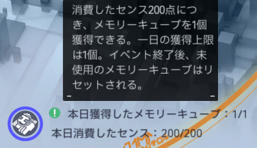 | Point! | 期間中は合計14個メモリーキューブを獲得可能です。 |