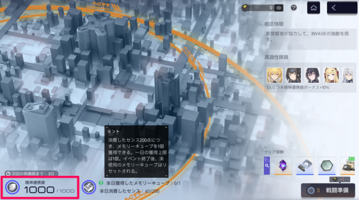 勇者ゲームはメタバースのコンテンツ扱いにもなるため、メタバースの毎週報酬獲得に必要な精神連携値が手に入ります。開催期間中はエリア鎮圧(恒常コンテンツ)ではなく、勇者ゲームへの挑戦を優先しましょう。