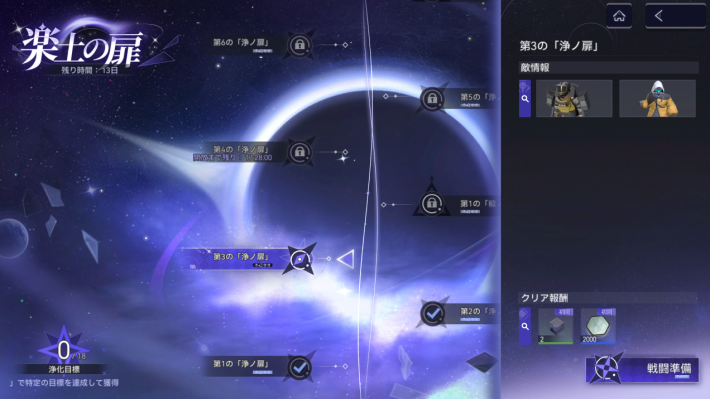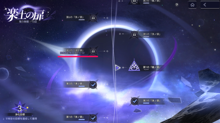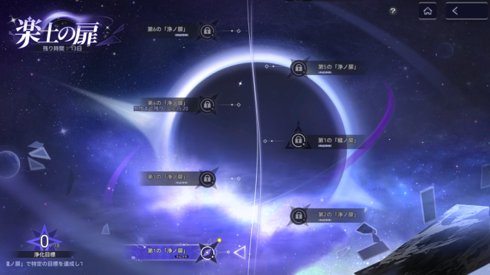 ステージはイベント初日にはすべて開放されず、浄ノ扉3ステージと穢ノ扉1ステージが、毎日1セットずつ順次開放されます。