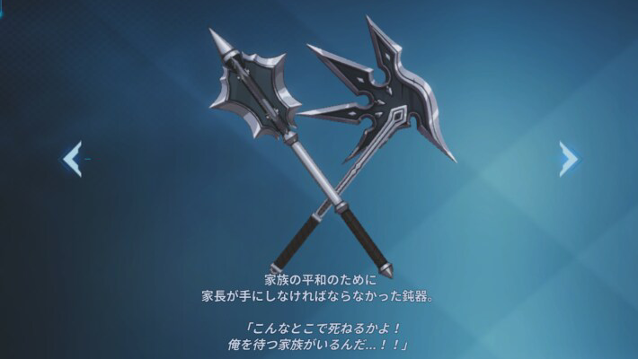 専用武器を装備すると、防御力が増加(最小時は2%、最大時は8%)する。スキルダメージが防御力を参照する久我にとってかなり嬉しい装備となっている。