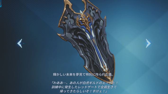 この武器を装備した上原が通常スキル1を使用すると、20秒間PTメンバーの受けるダメージが減少する。味方を守る手段が増加するため、PTの生存率向上に貢献してくれる。