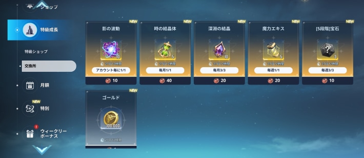特級ショップでパック購入時に貰える「特級成長コインVol.2」は、交換所でアイテムと交換可能。影の波動や深淵の結晶といった貴重なアイテムが入手できる。