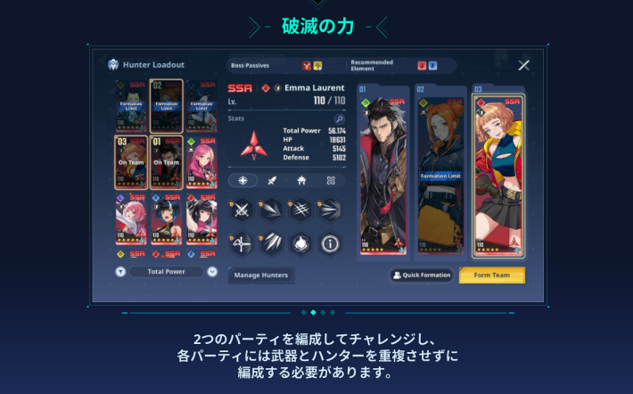 不滅の断罪は、2つのパーティーを編成して挑戦することになる。1つのパーティーに編成した武器/ハンターは、もう一つのパーティーに編成できないので注意しよう。
