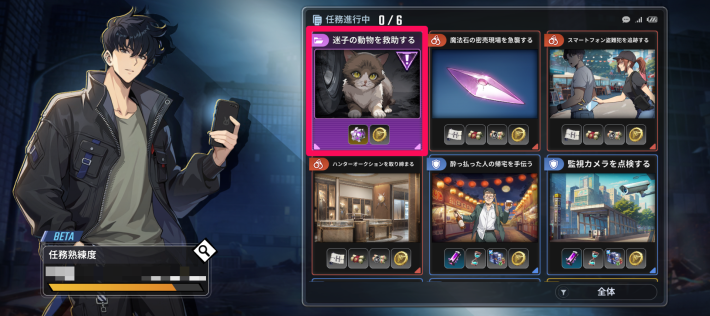 影の自警団では、「犯罪系/保護系/特殊系/日常系」の4つのカテゴリーにある任務から任意の任務を選択し、影を派遣することになる。任務によって貰える報酬や派遣可能な影が異なる点に注意しておこう。