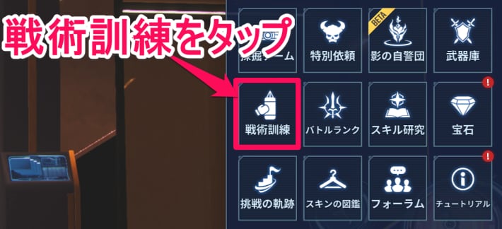 メニューを下にスワイプし、「戦術訓練」をタップ。