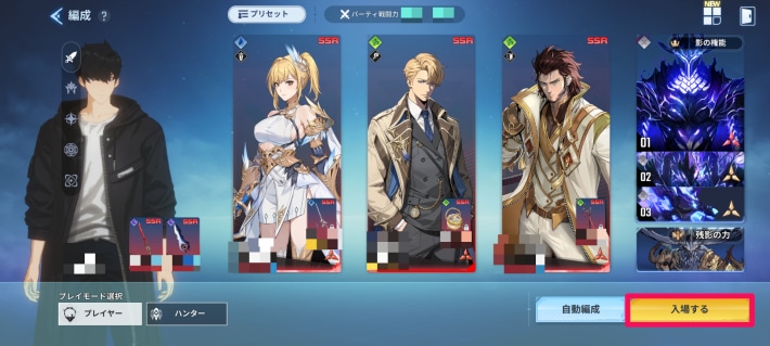 プレイモード選択が完了したら、PTを編成しよう。編成が完了したら「入場する」をタップ。