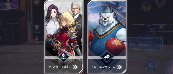 2025/9/25(木)アプデで戦術訓練が実装されたことで、メニュー欄から「ハンターお試し」のアイコンが削除された。ハンターお試し画面へ行くには、メニューに追加された戦術訓練を押すか、PU召喚のハンターお試しボタンを押すことになる。