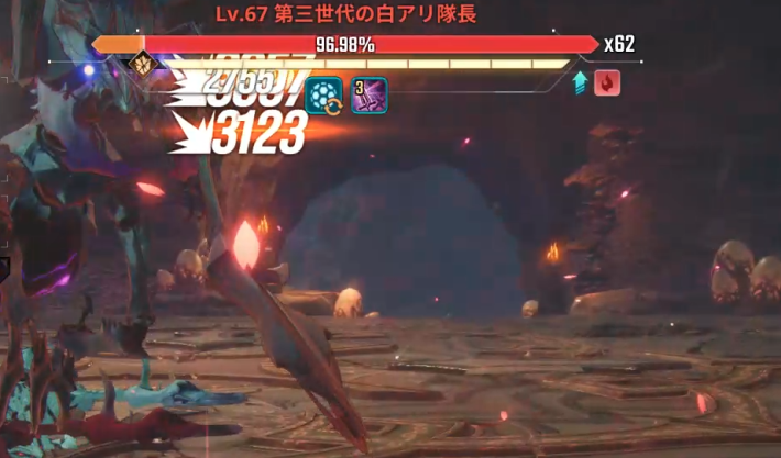 ボス戦は、第3世代の白アリ隊長&複数の雑魚。雑魚は無視してボスのHPを削ることに集中しよう。必殺技が発動可能になったら、必殺技を使って雑魚撃破するのがおすすめだ。