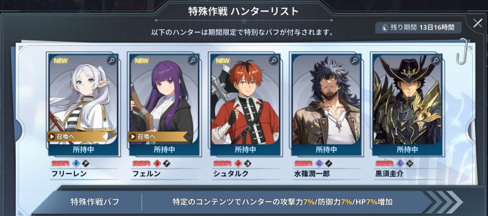 アップデートが行われる度に対象者が変化する「特殊作戦リスト」の対象者は、観望者の禁書館で対象者の攻撃力/防御力/HPが増加する。特殊作戦リストの対象者を持っていれば、攻略メンバーに編成しておこう。