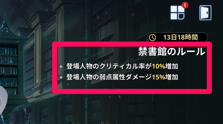観望者の禁書館は、水篠旬・影・残影の力が使用/編成不可。ハンターのみで攻略することになるので、複数のハンター育成が重要となる。