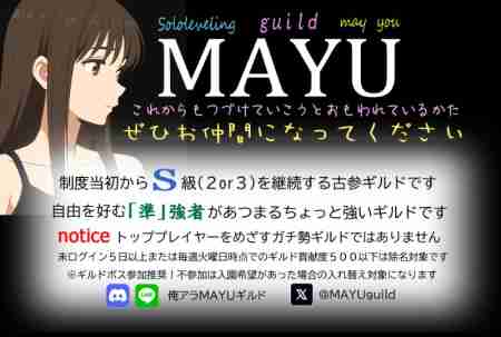 【ギルド名】MAYU【人数】49【ランク】S2(or3)【LV】17