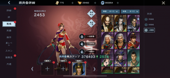 武将に戦魄を装備させるだけで、手軽に戦力を強化できます。戦魄は知謀の頂・連合や群英合戦で入手できます。