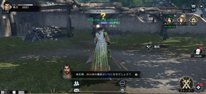 その後は、メイン画面中央部分のコメントをタップしながら進行します。ストーリーや建設、官職などが順次解放されていくので、どんどんこなしていきましょう。