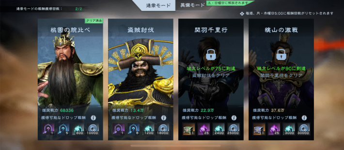 戦魄は群英合戦の報酬で効率よく入手できます。群英合戦の挑戦回数は毎週月・木曜日にリセットされるため、忘れずに挑戦しましょう。群英合戦のステージは規定の城主レベル到達時に1個前のステージをクリアすると解放されます。