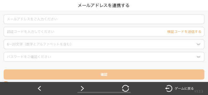 データ連携は、メールアドレスでも可能です。メールアドレスを入力してから認証コードを入手し、パスワードを設定して完了です。