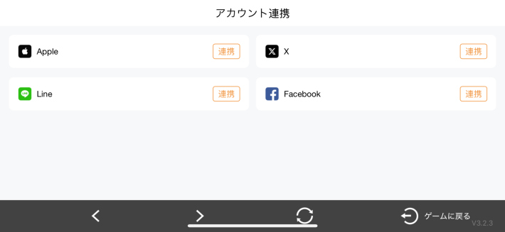 アカウントを引き継ぎたい場合は、タイトル画面で事前に連携したアカウントにログインしましょう。既にログインしているアカウントから別アカウントに切り替えたい時は、一度アカウント画面からログアウトすることでログイン画面を開けます。