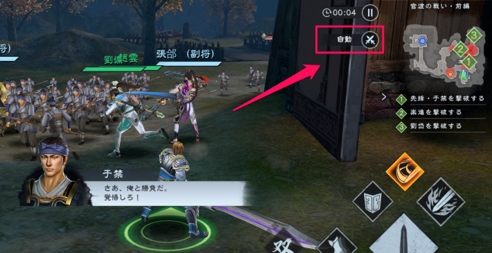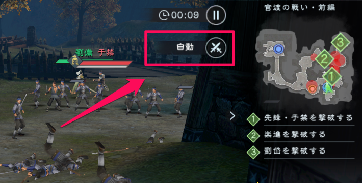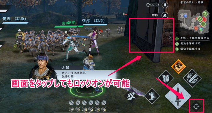 自動戦闘は雑兵を含めた近くの敵を自動で攻撃するのみのため、遠くにいるターゲットや特定の場所に移動したい場合は手動で操作が必要になります。