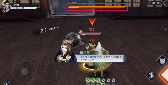 敵将はブレイクゲージを所持していて、攻撃を与えることでゲージを削ることができます。全てのブレイクゲージを削ることで敵の動きが止まり、敵がのけぞった隙に攻撃を与えられるため、ブレイクゲージは素早く削りましょう。