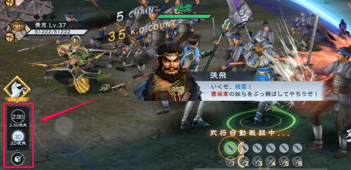 戦闘中に左下のアイコンをタップすることで視点を「2.5D視点」と「3D視点」に切り替えられます。2.5D視点では視野が広くなり、3D視点だと操作キャラに近い視点操作ができるため戦闘中の状況によって視点を切り替えながら戦いましょう。