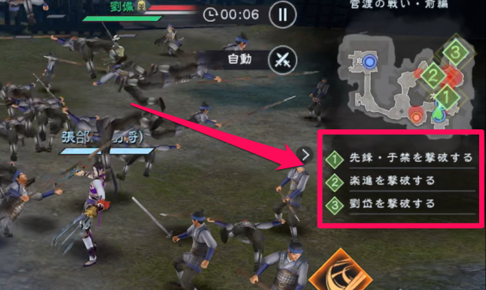 戦闘をクリアするためには敵将(ボス)を倒す必要があります。ボスはHPや攻撃力が高く範囲攻撃をしてくるため、EX攻撃や無双乱舞を駆使して素早く倒すのが攻略のコツとなります。