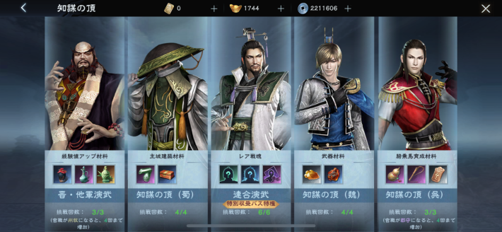 | ストーリー ※メインステージのみ | 知謀の頂 |