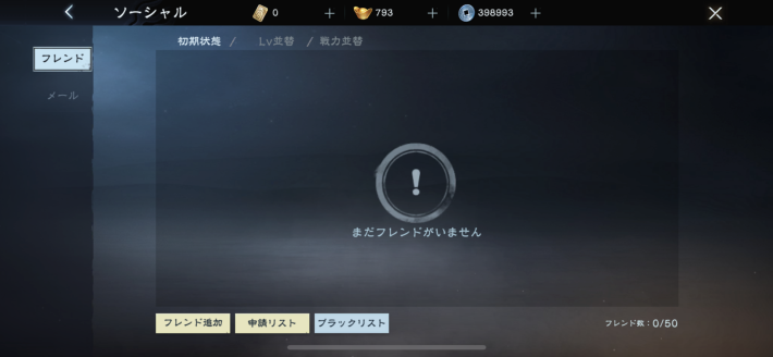 チャットウィンドウの横にある部分をタップすると、フレンドやメールなどを確認できるソーシャルメニューに移動できます。フレンドの管理やメールの受け取りなどはこちらから行いましょう。