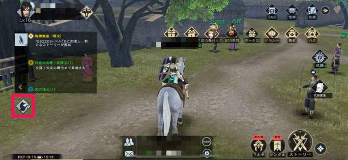 クエスト下の馬のアイコンをタップすると、馬の乗り降りが可能です。