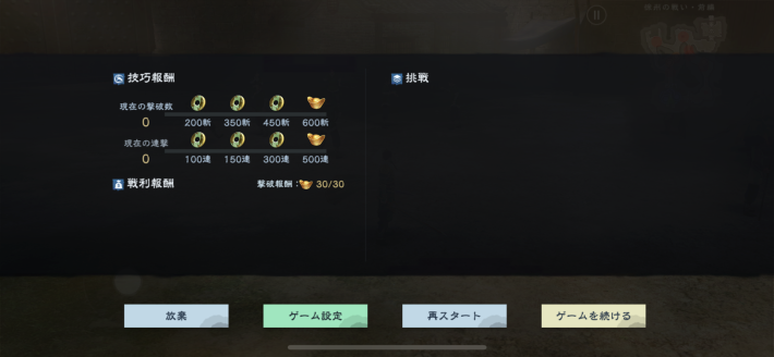 画面上部の経過時間表示部分をタップすると、一時停止してメニューを開くことができます。報酬の確認などもこちらから可能です。