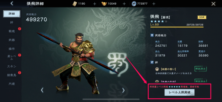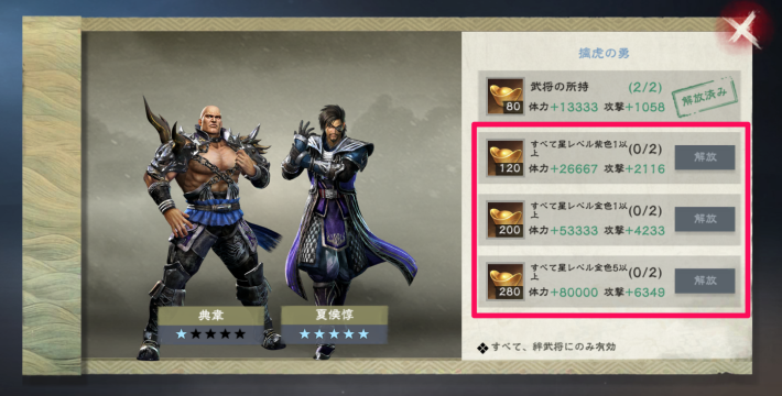 星が5個ある状態から星のレベルを上げると星のレベルの解放が可能で、新たな戦法を解放できます。戦法はキャラのステータスやダメージ量などを増加できるため、戦力の強化に繋がります。