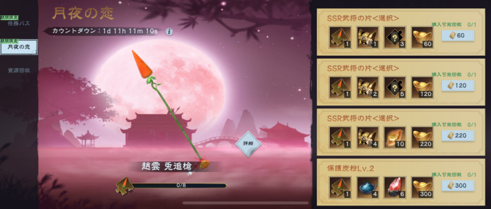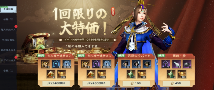 パックやパスの中には片を直接購入できるものもあります。「武将の片パック」などのお得にキャラの片を入手できるパックも販売されるため、課金を予定している方は要チェックです。